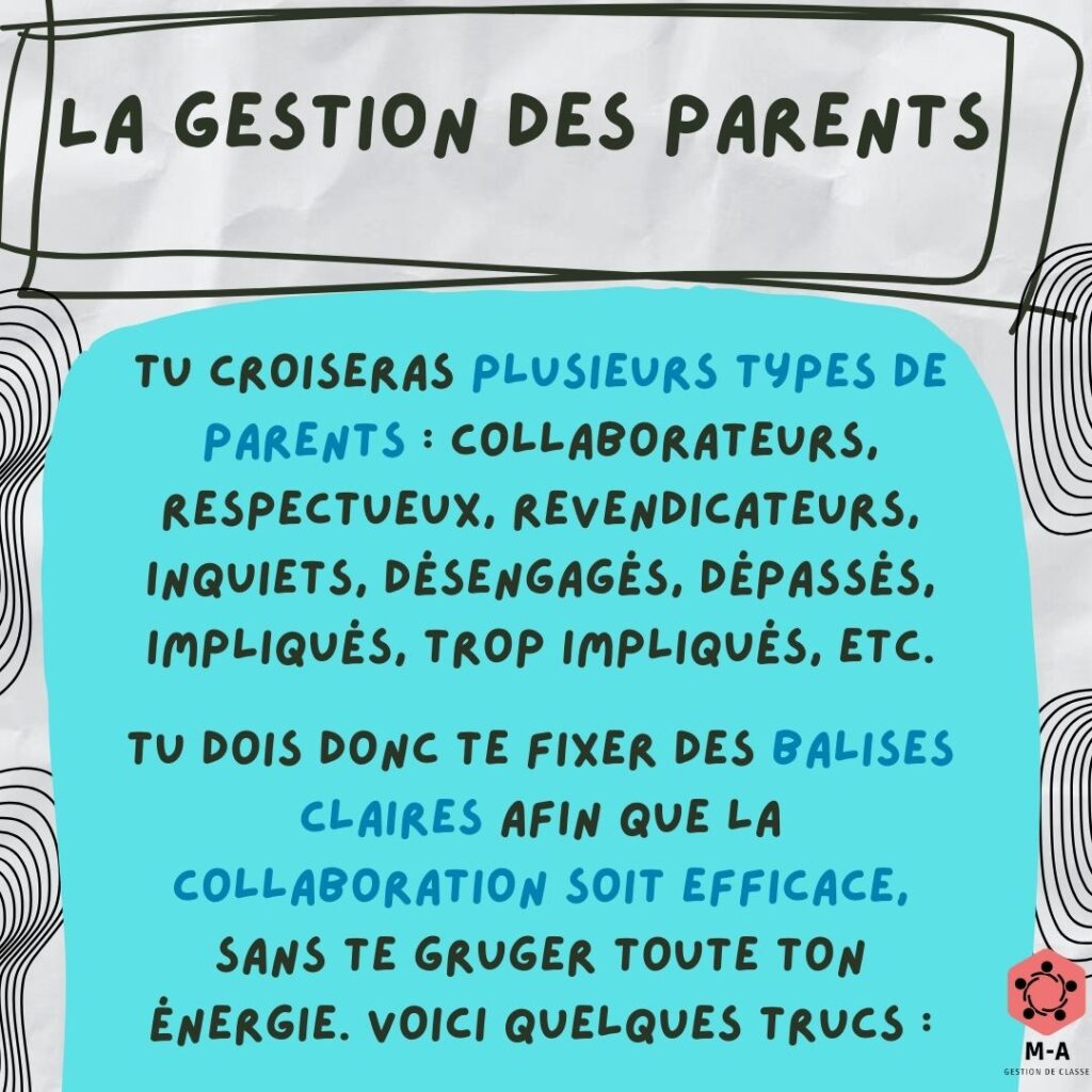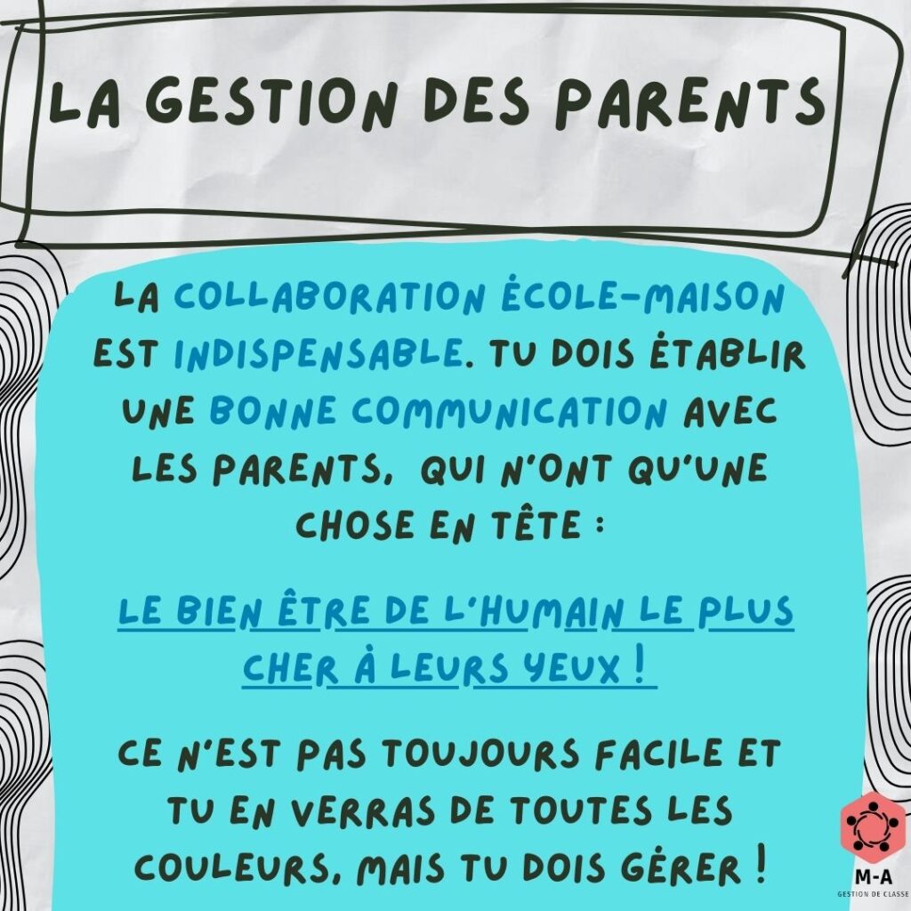 La gestion des parents prend de plus en plus de place dans la tâche d’un enseignant. Comment s’assurer de créer un climat école-maison efficace tout en respectant tes limites ? Voici quelques conseils.