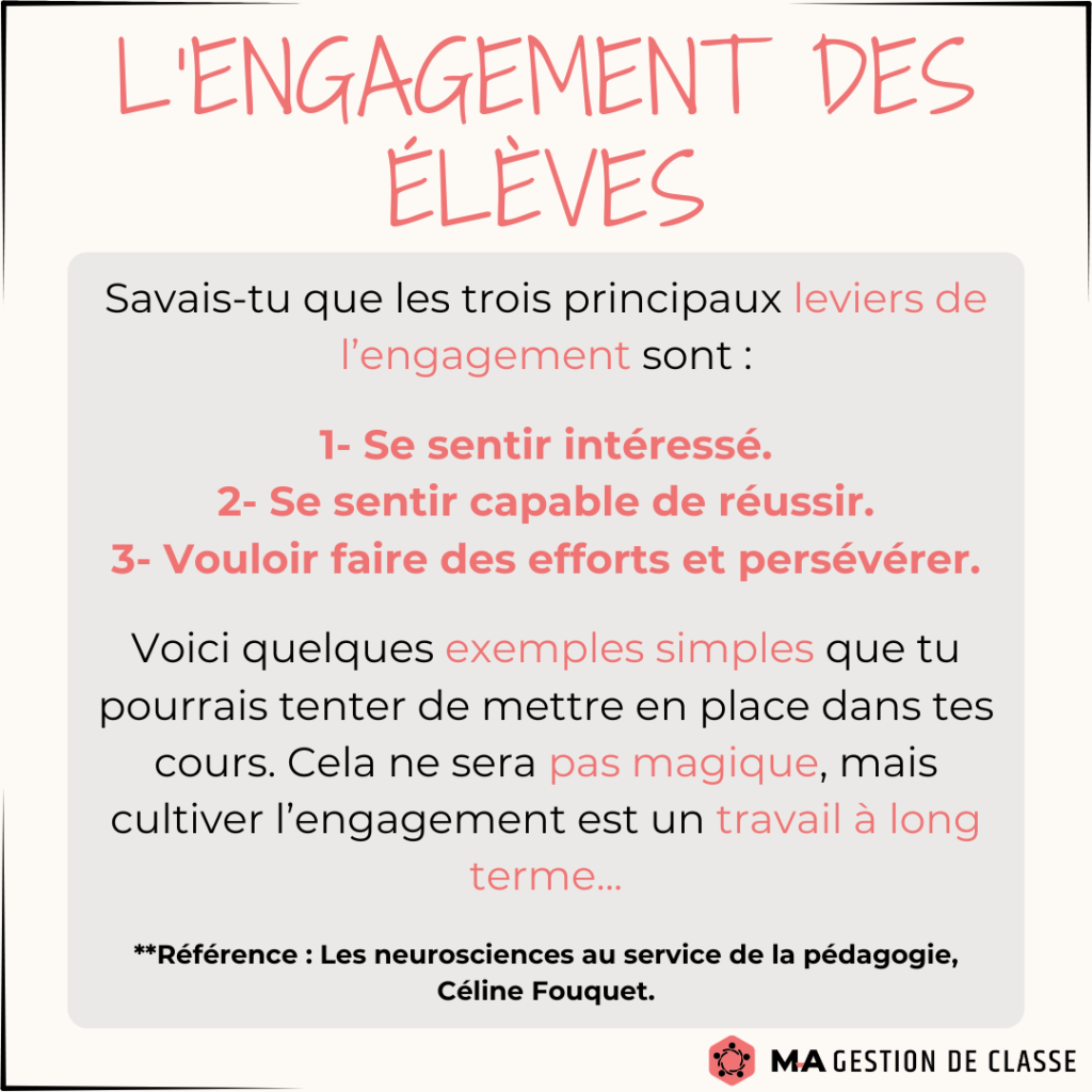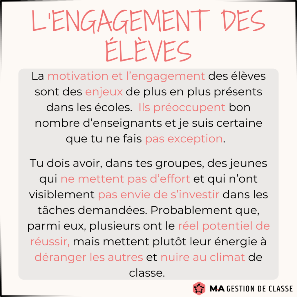 L’engagement des élèves est un enjeu majeur ces dernières années. Les enseignants gaspillent une énergie folle et un temps précieux à tenter de motiver, captiver et intéresser les élèves (qui sont habitués aux distractions et aux stimulations des réseaux sociaux).